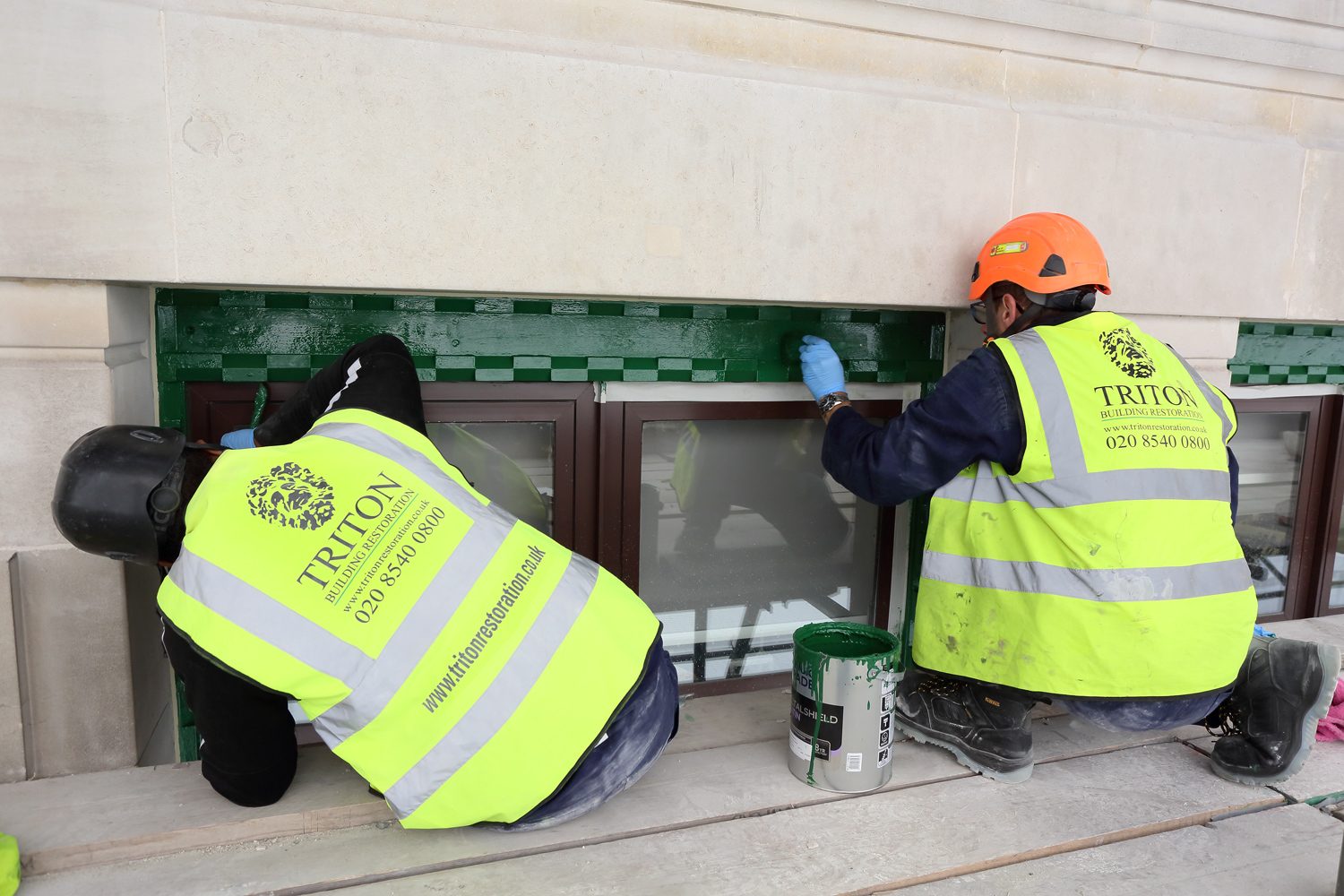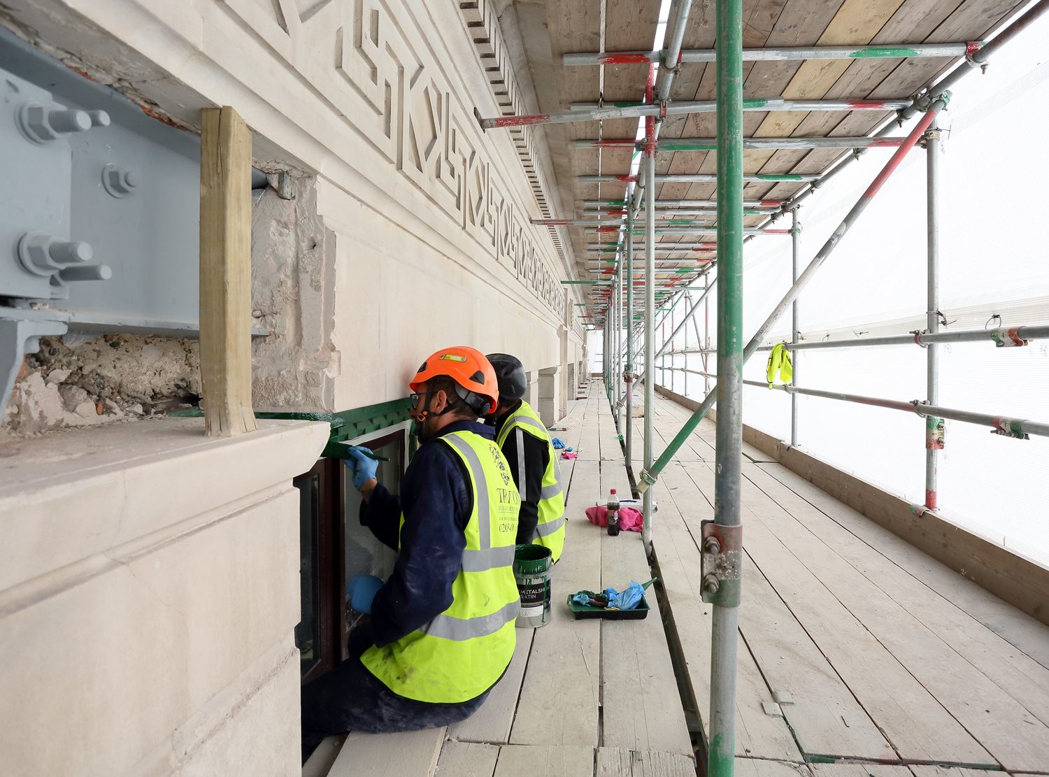 In addition to this there were over twenty other trades to coordinate including replacement of Portland Stone, restoration of the original cast iron spandrel panels, steel window restoration, Westmorland slates replacement, leadwork and joinery repairs, asbestos R&D surveys, Bimetallic Corrosion testing, Ground Penetrating Radar surveys, installation of temporary security systems and M&E services.
