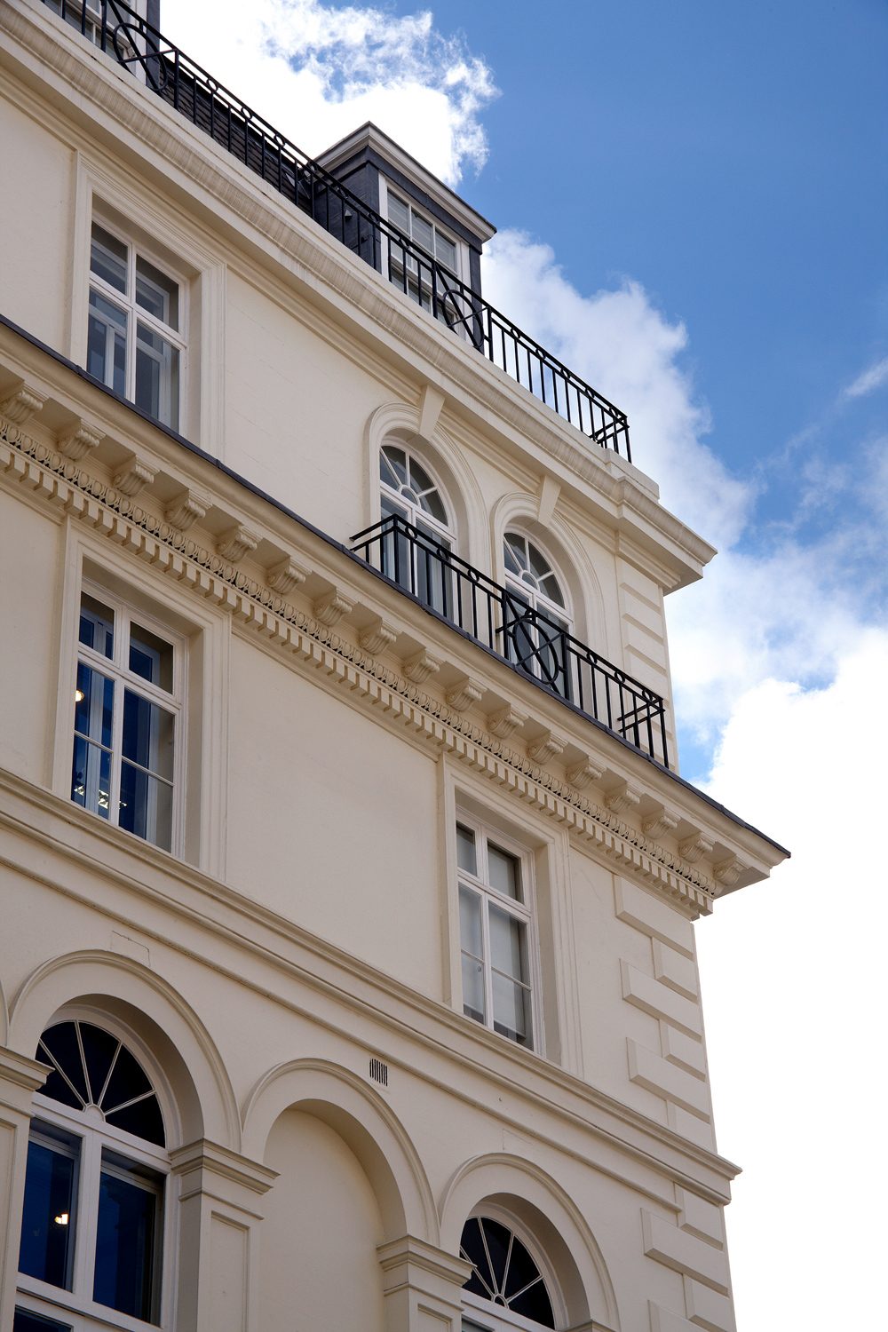 In 2014, Triton were instructed by JLL to undertake external repairs and redecoration to the external façade. Works were completed within the short 6-week contract and to budget. The works consisted of redecoration to the railings, windows as well as cleaning to stone balustrades and balconies. Our team used a low-pressure method to clean the stone balustrades and ensure the soft stone was not damaged during the process.