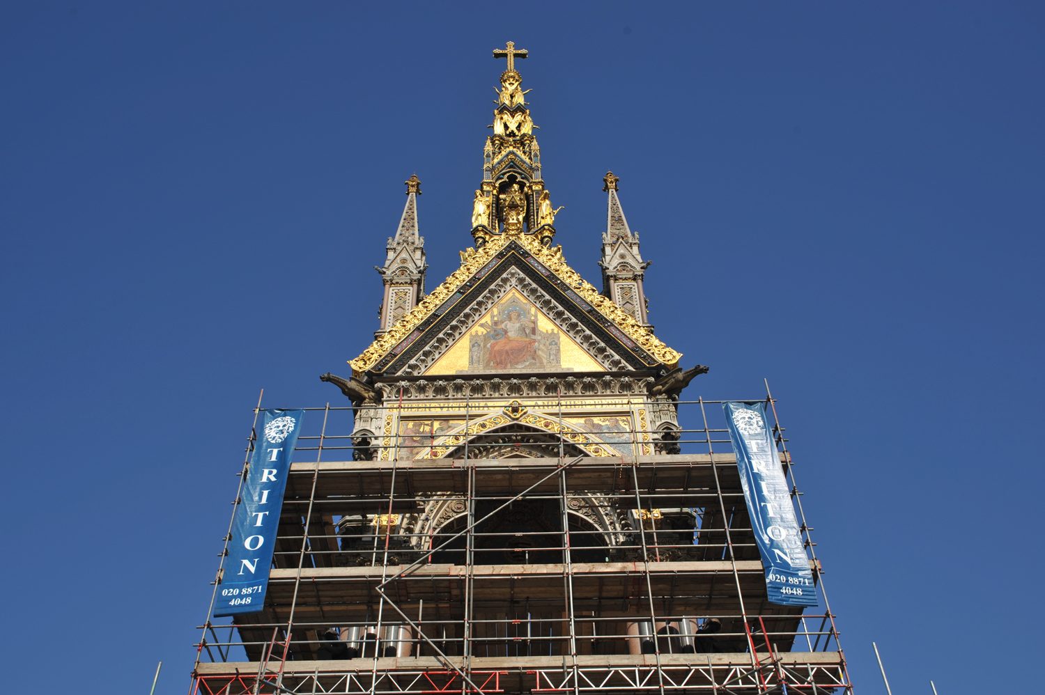 Commissioned by Queen Victoria in 1861 as a memorial to her late husband, King Albert, the Royal Albert Memorial is a Grade II listed memorial designed by George Gilbert Scott and sculpted by John Bell. This high-Victorian gothic statue, situated in Kensington Gardens and facing the Royal Albert Hall, underwent extensive restoration by Triton.