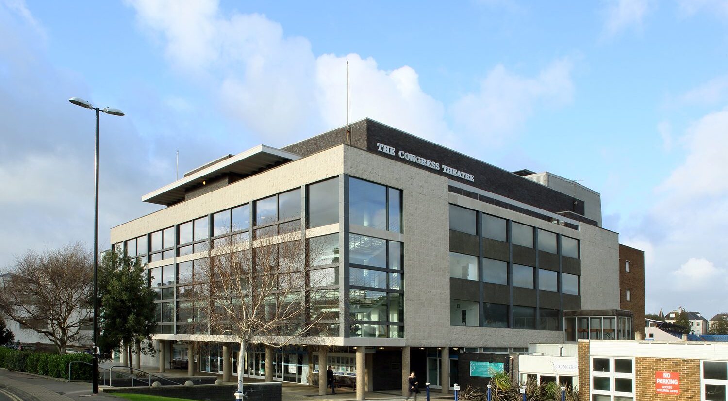 Designed in 1958 by Bryan and Norman Westwood, the Congress Theatre in Eastbourne is a Grade II* listed modernist theatre that hosts touring West End Theatre, Ballet, Opera, Comedy, and Live Music.