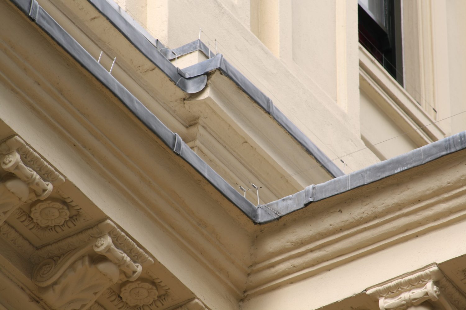 All Corinthian capitals, corbel brackets, and door surrounds were carefully restored to their original condition. The flashing to the string courses and cornices were renewed in Code 5 lead and all joinery was repaired as necessary.