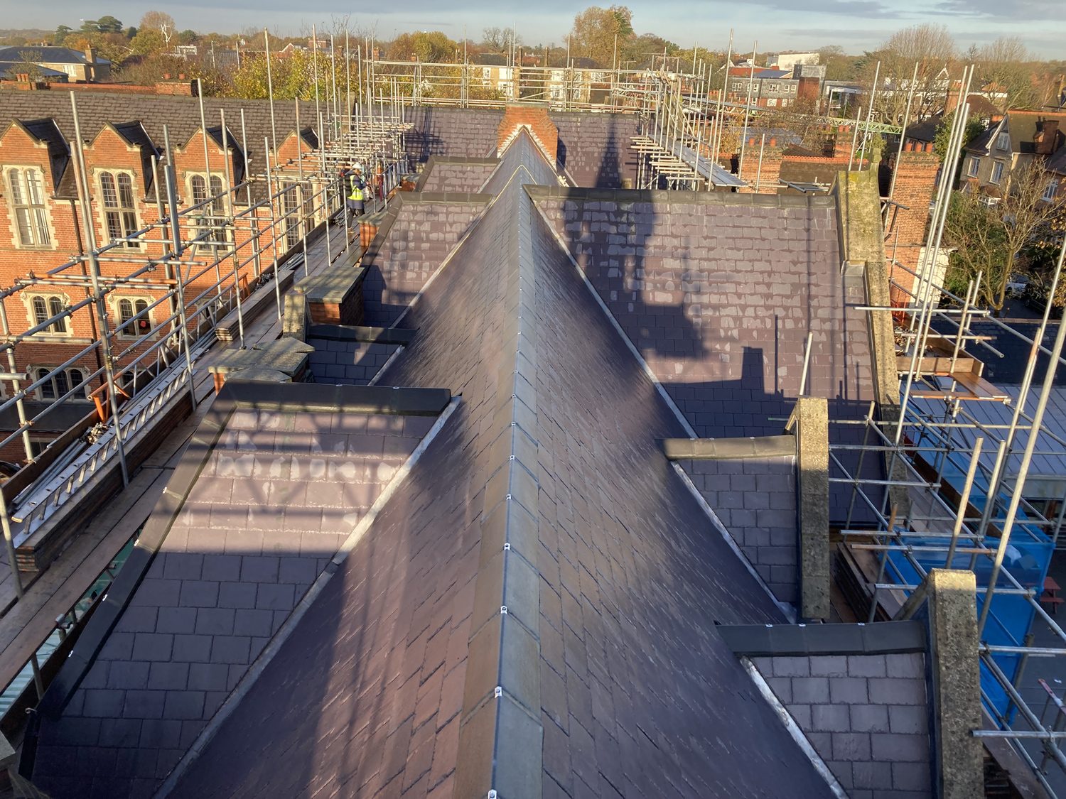 The scope of this project was extensive, involving the replacement of rainwater goods, carpentry, faience, soffits, roof, and rooflights. This complex project demanded meticulous planning and execution to ensure that the building’s heritage was preserved, while also prioritising the safety of all students.